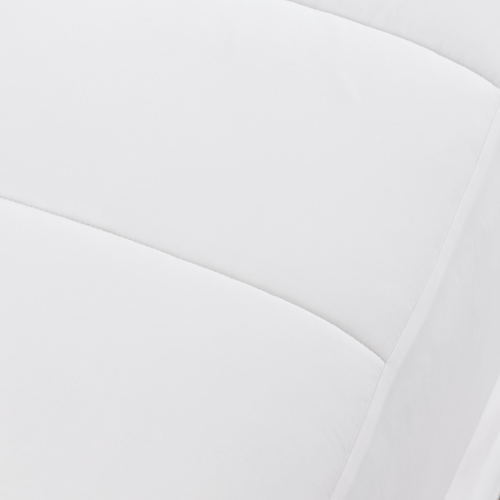 The 6" channel quilting ensures consistent loft and even support, while the smooth fitted skirt stretches to fit mattresses up to 20" deep, staying securely in place night after night. For added convenience, TrueFit™ color-coded size indicators make laundry and reassembly effortless.
